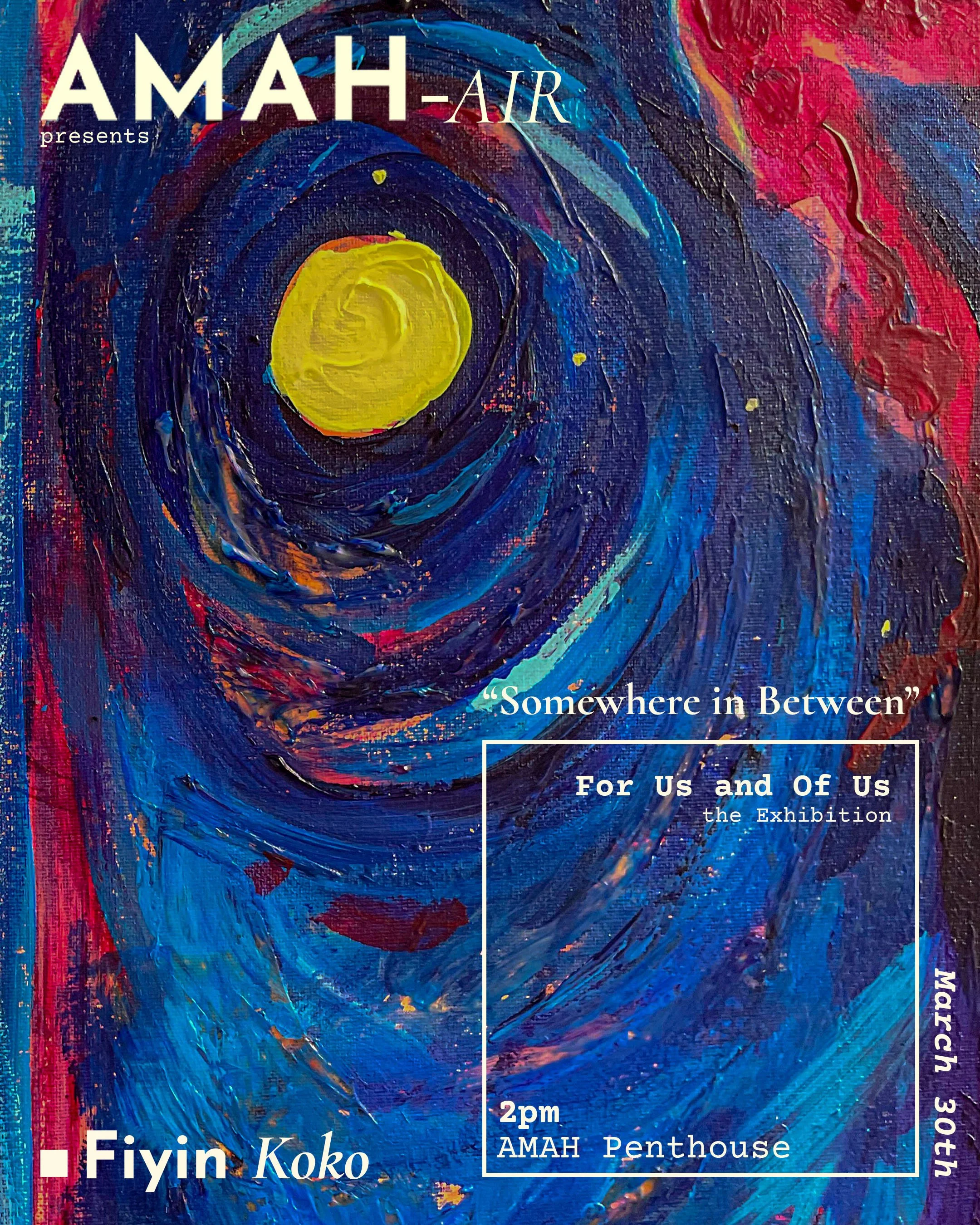 Experience the magic of Fiyin Koko’s work during her residency at AMAH . From April 1st to 4th at the AMAH Penthouse Get your tickets now.